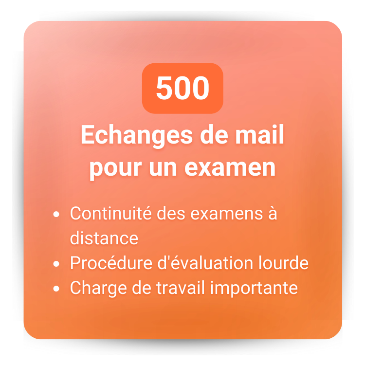 Nous nous sommes très rapidement rendu compte que cette alternative n’était pas pérenne puisqu’elle était la source de multiples échanges entre l’établissement et les étudiants. De plus, ce mode de fonctionnement générait une charge de travail très important, notamment concernant les tâches administratives liées à l’organisation des examens.