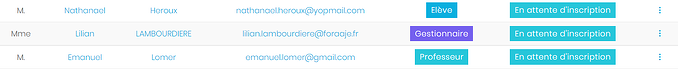 2/ En attente d’inscription : L’utilisateur est activé, un mail d’inscription lui a été envoyé.