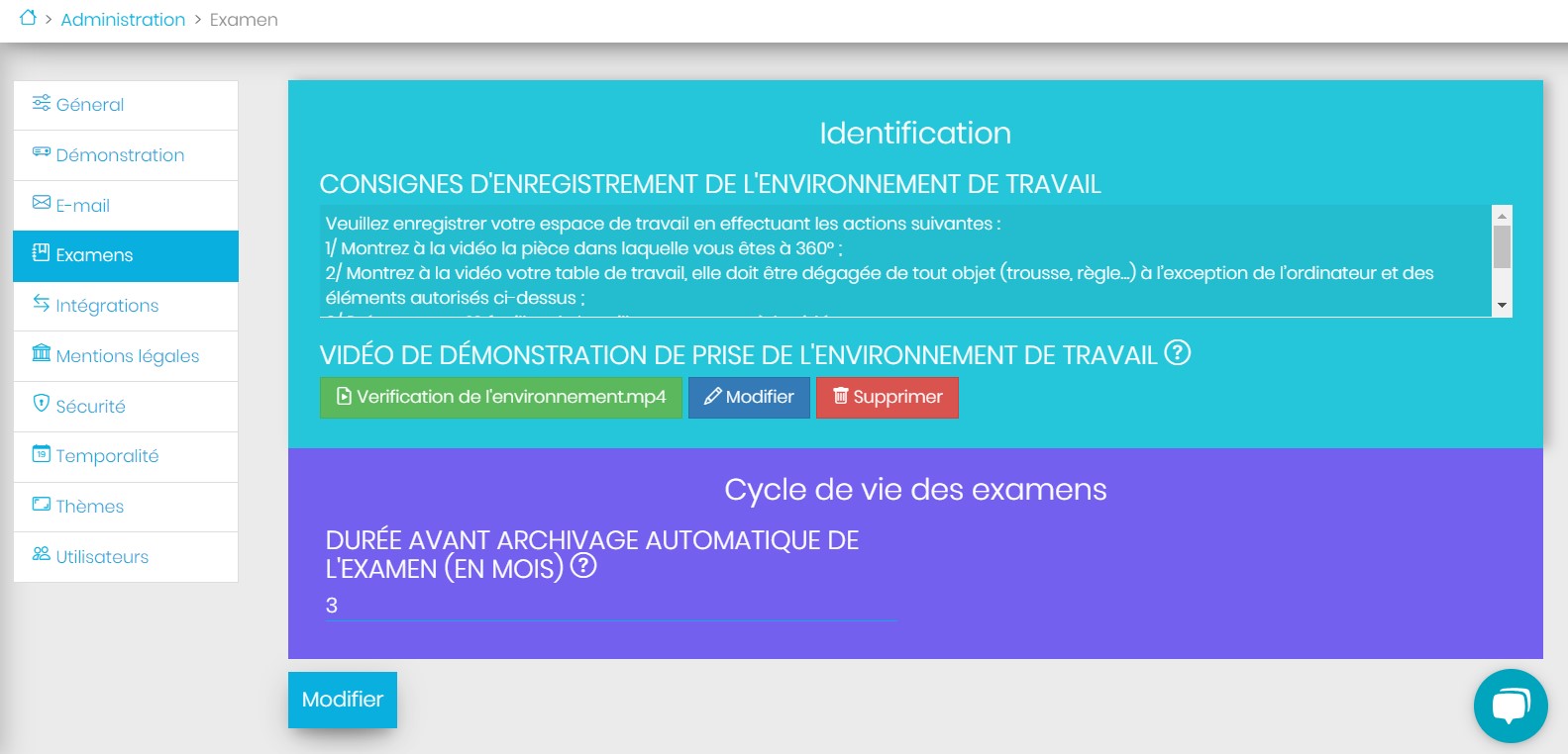 Configurez la durée avant l’archivage automatique des examens.