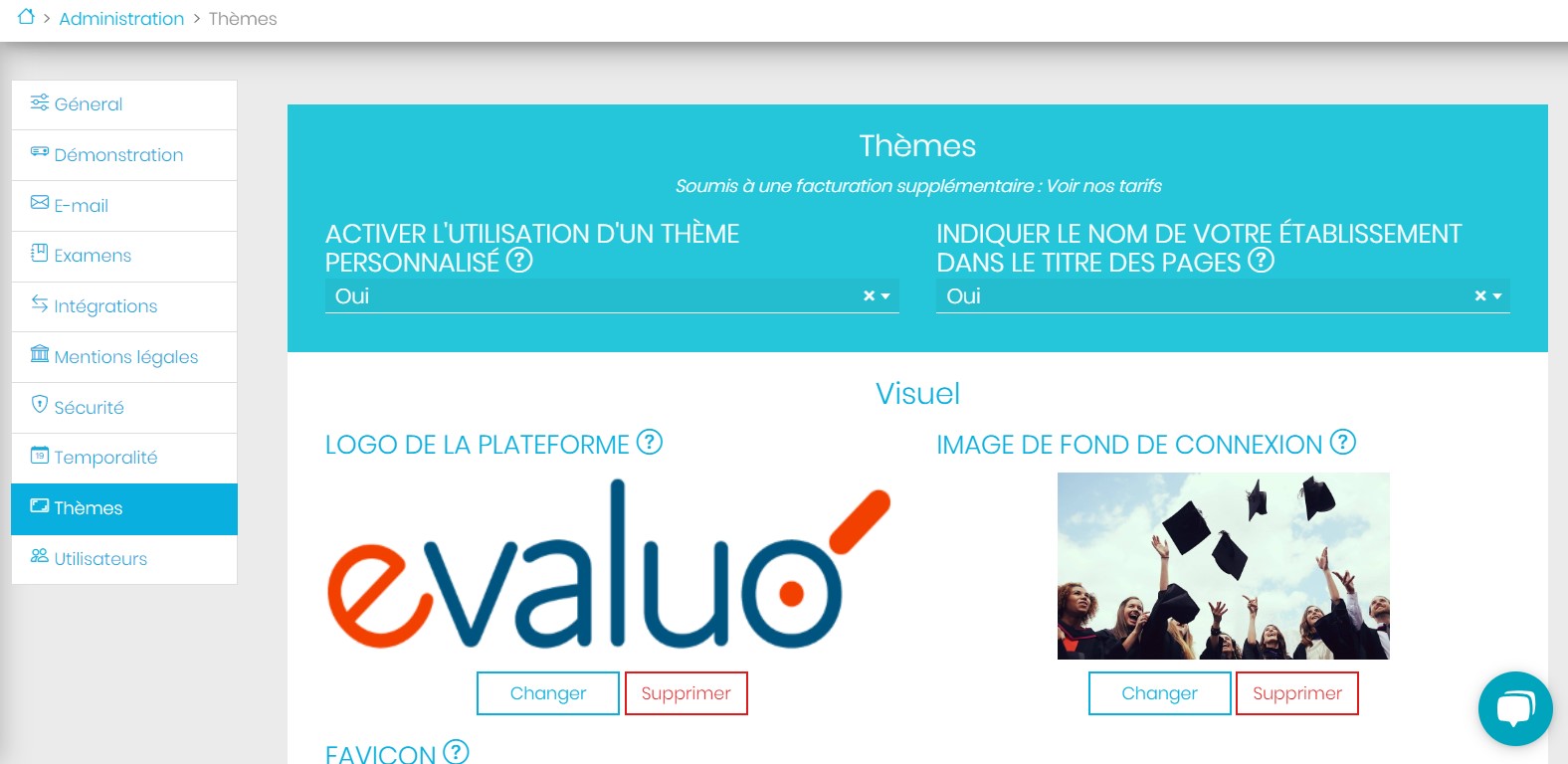 Personnalisez le thème de votre plateforme Evaluo (soumis à une facturation supplémentaire, voir nos tarifs).