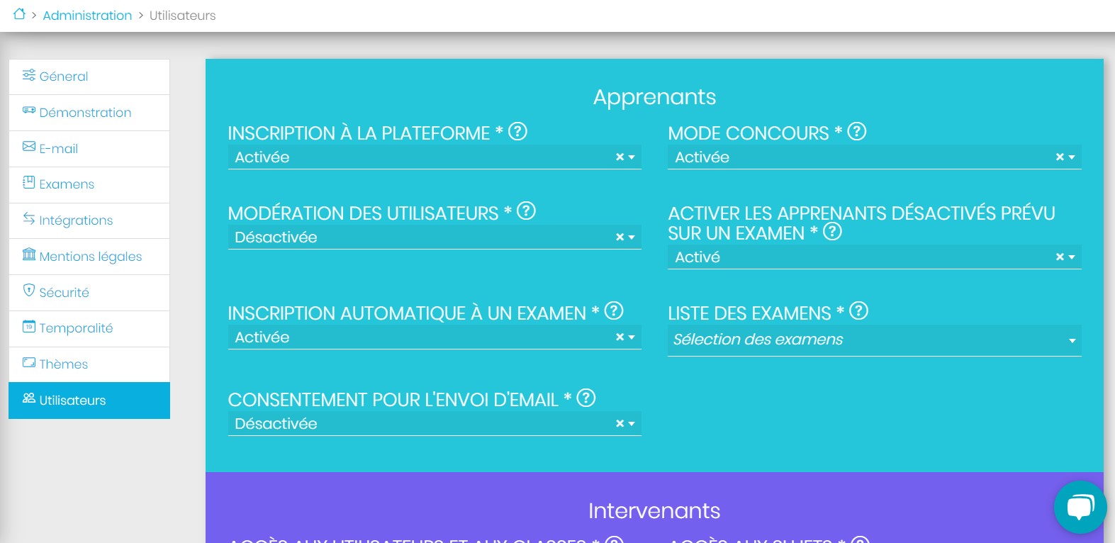 Gérez les droits des candidats ainsi que de vos intervenants.